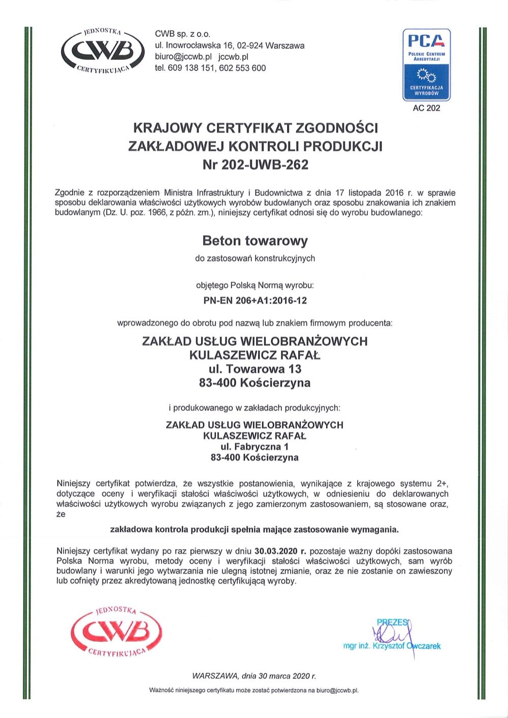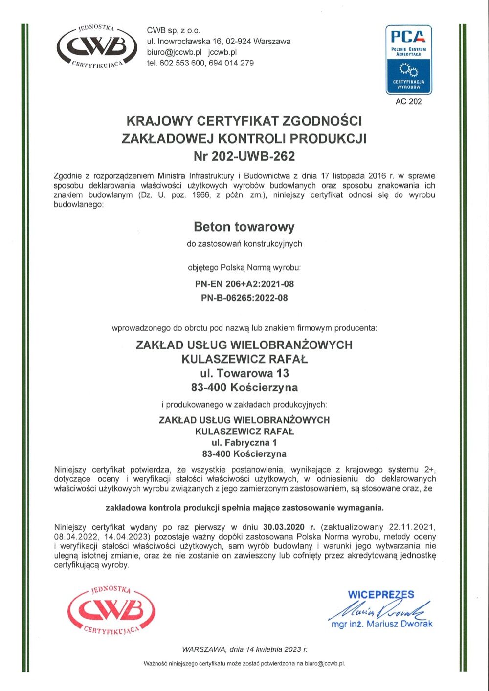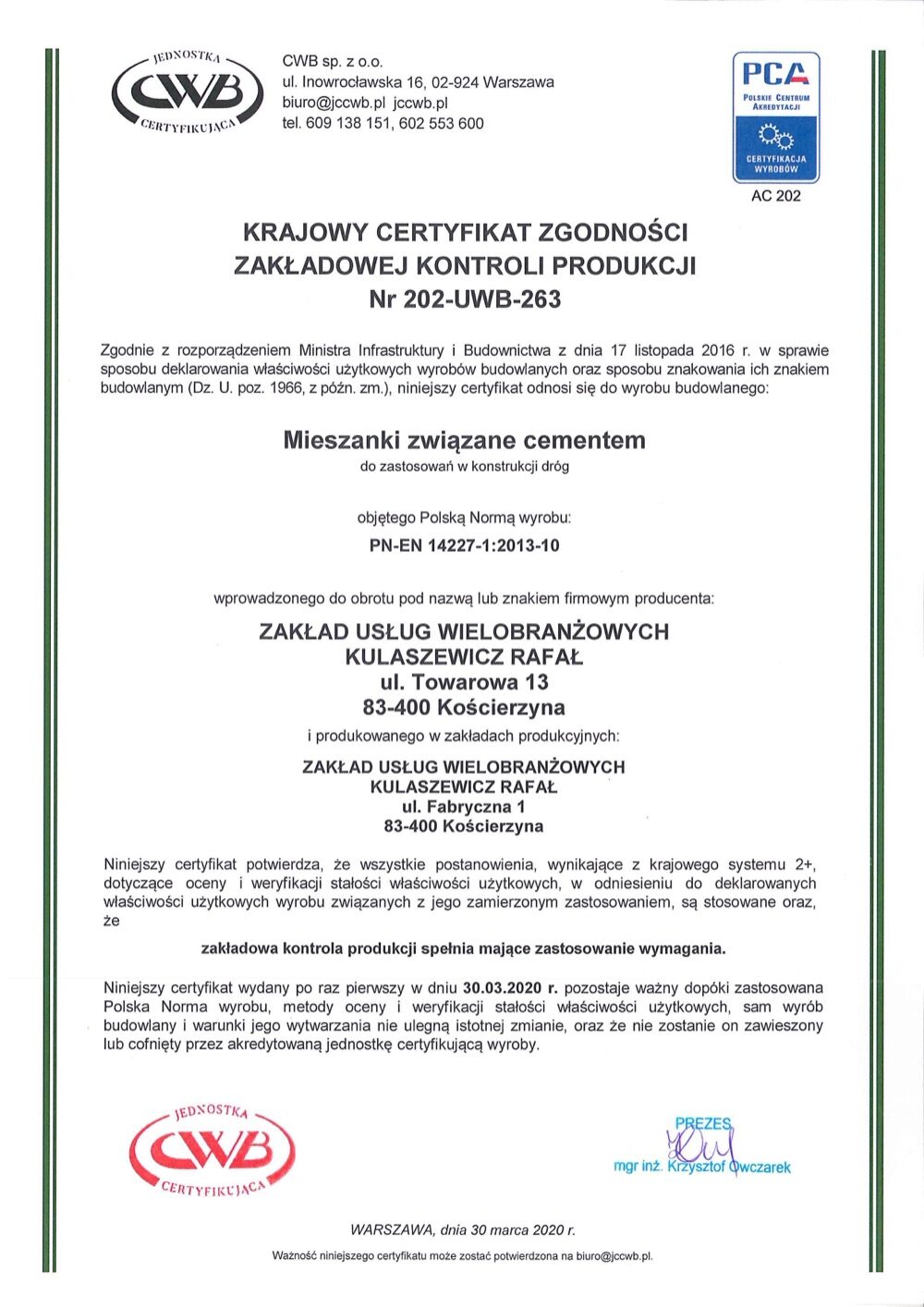 W węźle została wdrożona Zakładowa Kontrola Produkcji oraz certyfikat jakości, dzięki czemu nasze wyroby są monitorowane i badane na każdym etapie – od dostarczanych surowców aż po gotowy produkt.